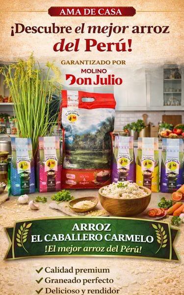Hoy, Molino Don Julio representa la unión entre tradición familiar, innovación tecnológica y excelencia gastronómica. Seguimos trabajando con la misma pasión del primer día, orgullosos de llevar al mundo un arroz que honra la tierra, la cultura y el talento culinario del Perú.